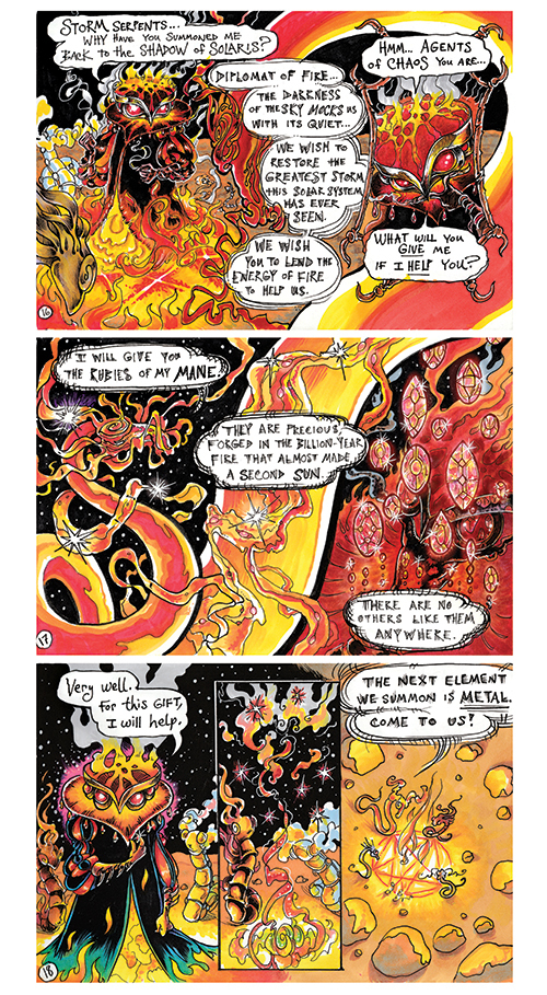 Four dragons from Jupiter convene on the moon Io, outraged at the decline of Chaos in the universe. Together, they plot the return of Chaos to its former glory, when this solar system was a spinning disk of dust.